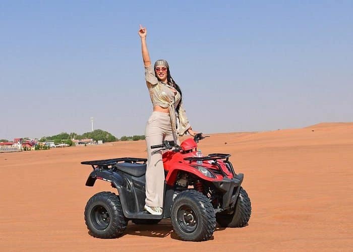 - Ride powerful 400cc and 450cc quad bikes across Dubai’s scenic red dunes